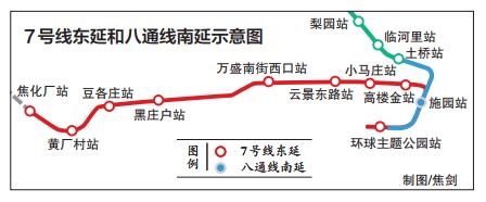 原標(biāo)題:分屬7號(hào)線東延和八通線南延,兩新線明年底開通