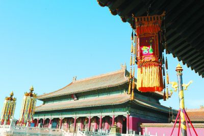 距離農(nóng)歷春節(jié)還有兩周,整個(gè)紫禁城開放區(qū)域已經(jīng)布置妥當(dāng),宮殿門口貼著寓意吉祥的春聯(lián)、門神,在廊廡下裝飾著華美的宮燈等,而天燈、萬(wàn)壽燈的復(fù)原成為最大亮點(diǎn)。
