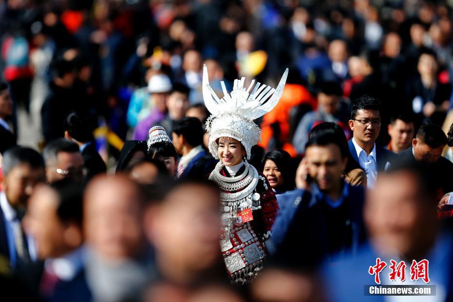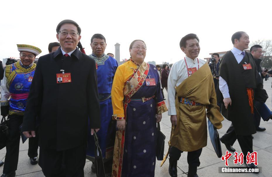 3月5日,第十二屆全國人民代表大會第五次會議在北京人民大會堂開幕,少數(shù)民族代表步入會場。中新社記者富田 攝 -