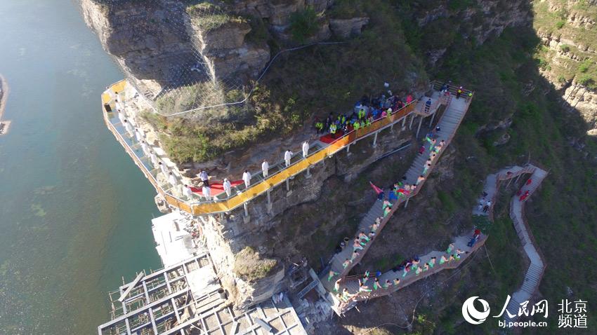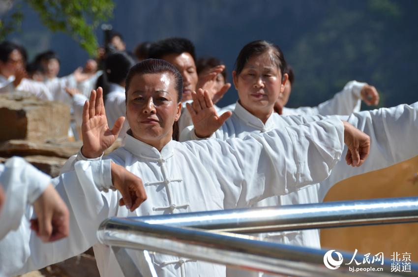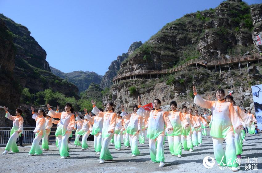 北京市房山區(qū)樂谷銀灘景區(qū)上演主題為“太極樂享天地之美”的空中太極之旅活動。人民網(wǎng)尹星云 攝 -
