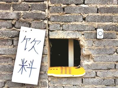 在該網(wǎng)友發(fā)布的照片中,這處窗口一側(cè)掛著寫有“飲料”的廣告牌,另一側(cè)安裝有一個門鈴!俺稣镜某丝桶聪麻T鈴就可以購買飲料。”