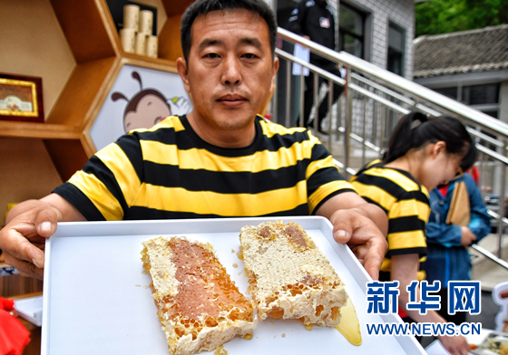 5月20日,在北京市密云區(qū)馮家峪鎮(zhèn),養(yǎng)殖戶在“割蜜節(jié)”上展示蜂巢蜜。 當(dāng)日,北京市密云區(qū)馮家峪鎮(zhèn)舉辦第一屆“割蜜節(jié)”,吸引眾多游客前來(lái)參觀、品蜜。 馮家峪鎮(zhèn)的西口外村、保峪嶺村等村莊地處燕山深處,從2016年初開(kāi)始發(fā)展中華蜜蜂崖壁養(yǎng)殖產(chǎn)業(yè),在懸崖上懸掛超過(guò)600個(gè)蜂箱,生產(chǎn)優(yōu)質(zhì)百花崖蜜。目前,全鎮(zhèn)331戶養(yǎng)殖戶共有中華蜜蜂1.12萬(wàn)群,年產(chǎn)崖蜜、蜂蜜9萬(wàn)公斤,帶動(dòng)59戶山區(qū)低收入戶加入蜜蜂養(yǎng)殖,戶均年增收超過(guò)6000元。 -