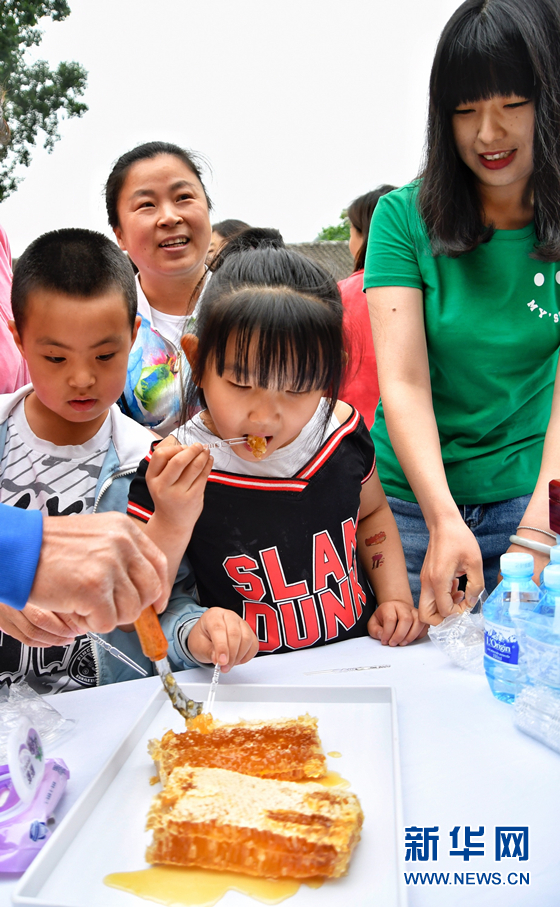 5月20日,孩子們?cè)凇案蠲酃?jié)”上品嘗蜂蜜。 -