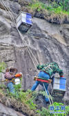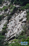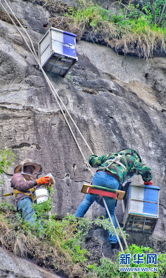 5月20日,在北京密云區(qū)馮家峪鎮(zhèn)西口外村,養(yǎng)殖戶在山崖上采集崖蜜。 -