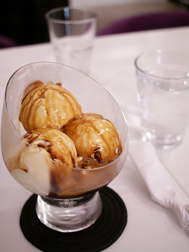 巧克力醬所繪制的圖案,也隨冰淇淋溶化而綻開,一幅狂放的立體山水畫隨之呈現(xiàn)。在味覺上,也由開始時的冷熱分明、甜苦有別而漸次融合,在水乳交融的過程中,充滿了口感上的想象與變化。 當在咖啡中添加冰淇淋作為口味上的變化時,須注意所選擇的冰淇淋香味不可太重,否則容易破壞咖啡原有的香味。