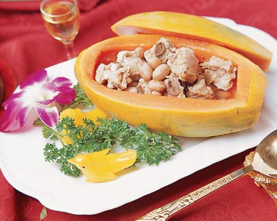 冰鎮(zhèn)苦瓜豬小肚白果湯木瓜豬骨花生碧綠鮑片