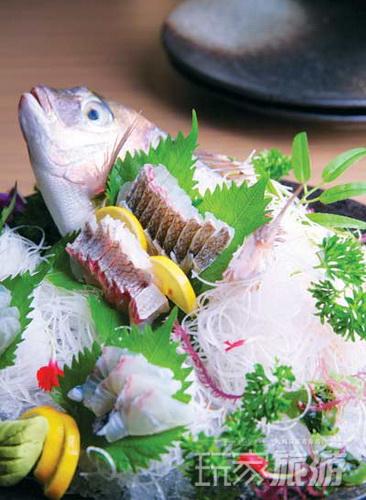 率先讓人想要試試的是海草沙拉(28元),店家介紹說(shuō)有多種來(lái)自日本的海草,決不只是昆布這么簡(jiǎn)單。果然,大大的一盆上來(lái),但凡是海草類的,都叫不上名字,配了2種不同醬汁,自己夾到盤中再控制咸淡,都是脆韌清爽的口感。而打算從喝酒開(kāi)始的,河豚的魚(yú)干絕對(duì)不能錯(cuò)過(guò),直接從日本進(jìn)口來(lái)的腌制好的魚(yú)干,配清酒或燒酒都很合適。刺身拼盤的新鮮度也讓人很滿意,分198元/4例和298元/6例2種分量,有海膽、白身魚(yú)和toro等。不過(guò)這些都比不過(guò)店里另一招牌對(duì)人的吸引——活魚(yú)刺身。
