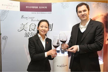 波爾多葡萄酒行業(yè)協(xié)會(CIVB)托馬斯-朱力安和大董餐廳南新倉店湯明姬共同揭幕北京站“美食美刻?波爾多周”