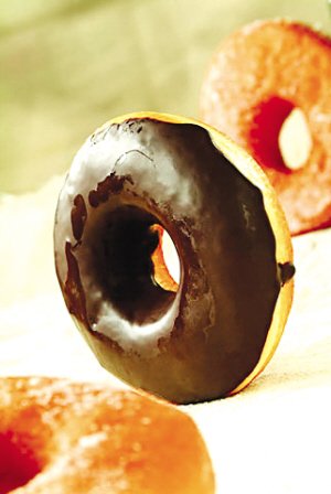 (5)將發(fā)好的面團(tuán)分成12等分,并做成圓圈狀,然后用中溫色 拉油將圈兩面炸熟。將筷子插入面團(tuán)中,若未沾上面糊,即表示里面已經(jīng)炸熟了。