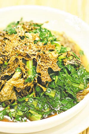 這種蝴蝶菌來自云南,有類似蝴蝶翅膀的黑白花紋,極為亮麗,生長在樹腳的部位,富含氨基酸,拖水后放涼了,與菜心粒一起,用經(jīng)過調(diào)味的陳醋、白芝麻涼拌。蝴蝶菌本身沒有味道,靠的是醋,入口有川式粉皮的那種味道,但沒有辣味,讓人過足癮頭。