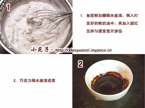 忙完了做月餅送禮的任務(wù),今天終于可以定下神來弄點新奇的應(yīng)節(jié)食物來留給家人了。雪月餅是想做很久的新品種,打算用紅豆慕斯做餡(覺得比雪糕更適合,切開來不會太硬),趁買了塑料布丁模,就是上次用來做冰皮月餅的模子,用來做幾個雪月餅留在中秋賞月享用。制作原理很簡單但也要花上不少時間和心思,好在做出來的成品無論在賣相還是味道都大受贊賞,尤其是用上次做卡通月餅的Hello Kitty模做了一對“小情侶”雪月餅,兒子放學(xué)回來看到還鬧著要吃它而不吃飯。我只好讓他多看它一會兒,然后匆匆收到冰箱里,還安慰他說,等過兩天賞月的時候一定會全部給他,這才把他哄住呢!