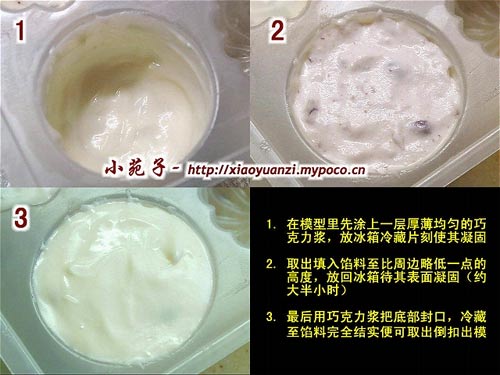 1. 填餡料時不易太滿,要比周壁巧克力層略低一點,底層巧克力一定要保證跟周壁層粘