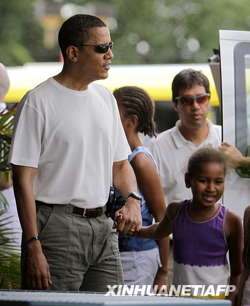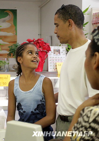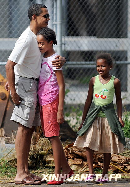 這是2008年12月26日,奧巴馬(左)在美國(guó)夏威夷檀香山陪伴小女兒薩莎。新華社/法新