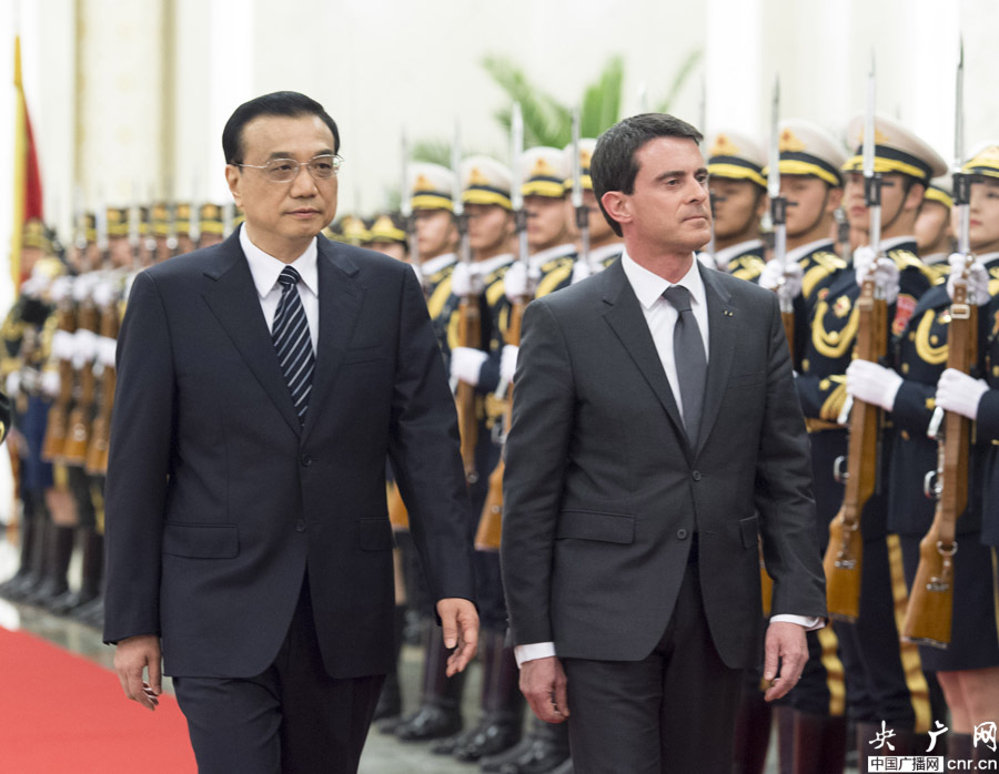 李克強(qiáng)舉行儀式歡迎法國(guó)總理瓦爾斯訪華
