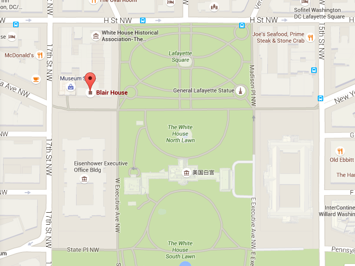 白宮到布萊爾國賓館方位示意圖(谷歌地圖截圖)