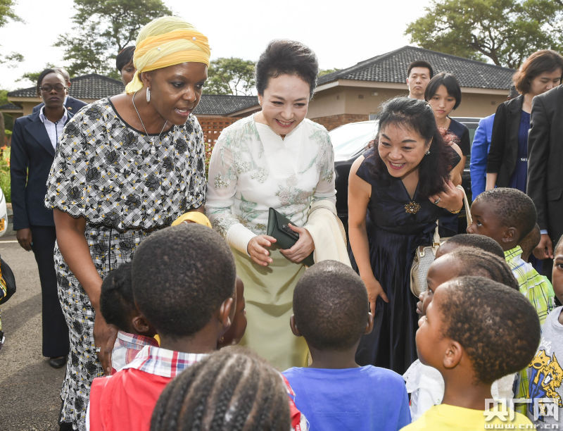 彭麗媛抵達(dá)時(shí),受到津巴布韋總統(tǒng)穆加貝夫人格蕾絲等熱情迎接。彭麗媛在格蕾絲陪同下,參觀兒童之家教學(xué)和生活設(shè)施,看望兒童之家收養(yǎng)的孤兒和被遺棄兒童,并贈(zèng)送教學(xué)設(shè)備、學(xué)習(xí)和體育用品等。彭麗媛表示,孤兒是社會(huì)中最弱小、最困難的群體之一,讓孤兒過上和其他孩子一樣的幸福生活,接受和其他孩子一樣的良好教育,是全社會(huì)的共同責(zé)任。希望他們熱愛生活,長(zhǎng)大后也能熱心幫助他人,回饋社會(huì)。祝愿孩子們?cè)趯挸ā⒚髁、溫暖的兒童之家快樂、茁壯成長(zhǎng)。