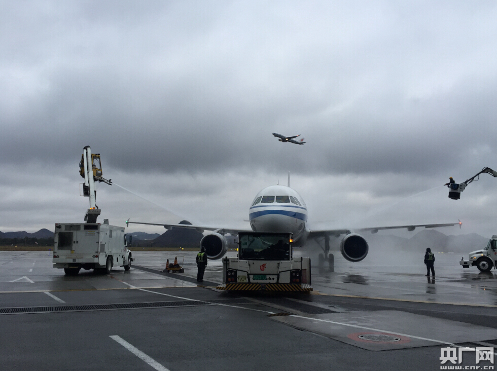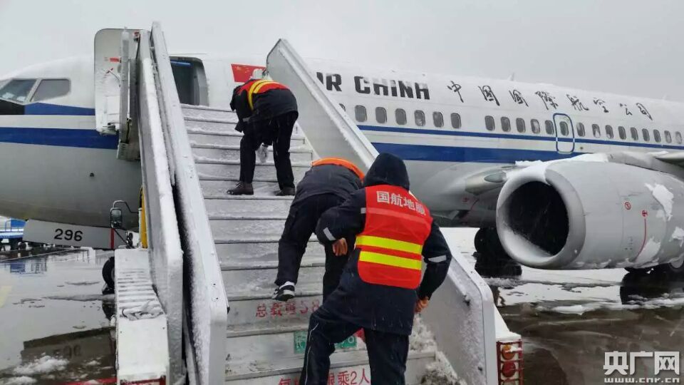 國航機務正在為飛機進行除冰作業(yè)。何芝奉攝
