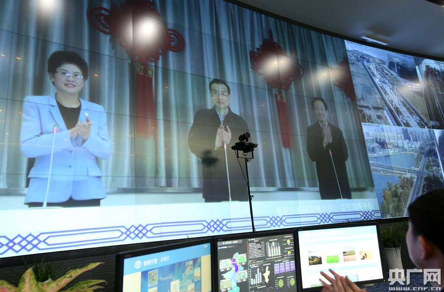 李克強(qiáng)2日在智慧寧夏綜合展示中心考察調(diào)研。 -