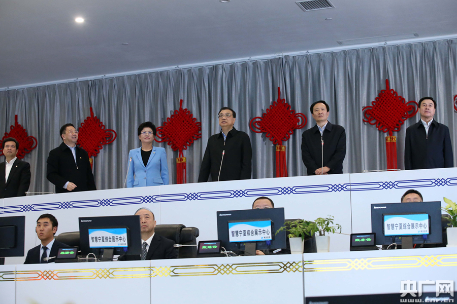 李克強(qiáng)2日考察智慧寧夏綜合展示中心。 -