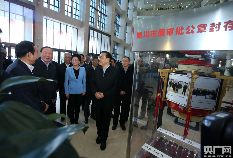 李克強(qiáng)2日考察銀川市民大廳。 -