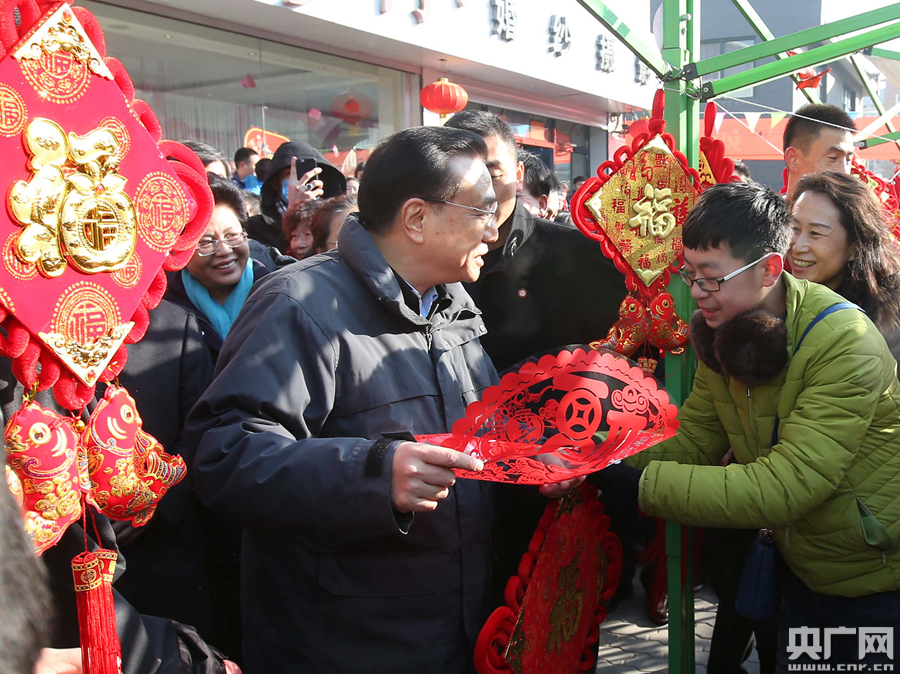 【李克強(qiáng)在寧夏考察春節(jié)市場供應(yīng)情況】李克強(qiáng)2日來到銀川永寧縣南橋市場考察。春節(jié)臨近,市場攤位上擺滿琳瑯滿目的各色年貨和春聯(lián)福字,充滿濃濃的年味?偫碓诿總攤位前細(xì)細(xì)詢問經(jīng)營情況。他對陪同的當(dāng)?shù)仡I(lǐng)導(dǎo)說,過年了,市場不僅要保障充足安全的物質(zhì)供應(yīng),還要為人民群眾提供豐富的精神產(chǎn)品。 -