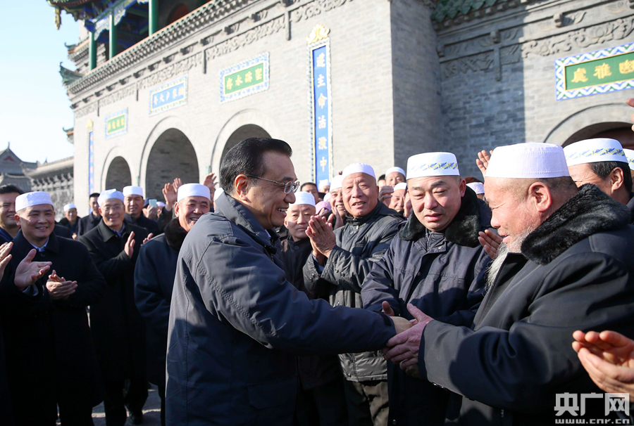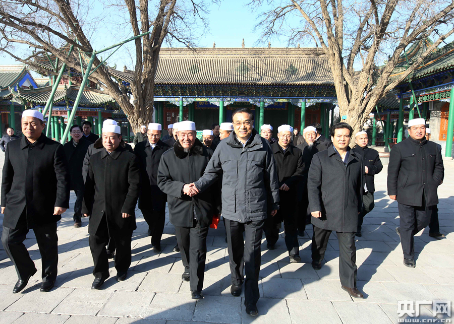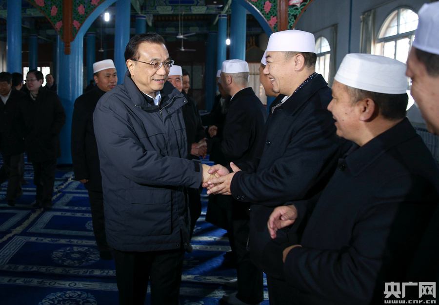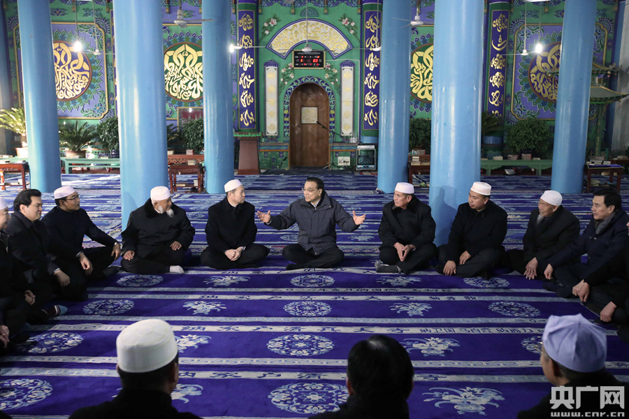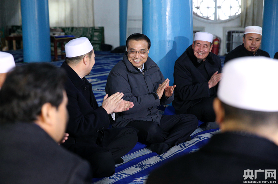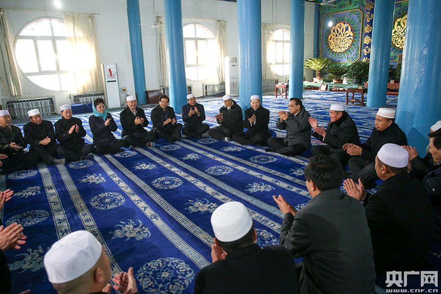 李克強(qiáng)2日來到銀川永寧縣納家戶清真寺與民族宗教人士懇談。 -