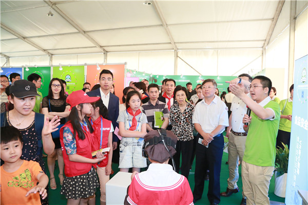 與會(huì)領(lǐng)導(dǎo)、嘉賓同兒童代表一同參觀兒童食品安全移動(dòng)體驗(yàn)營(yíng)