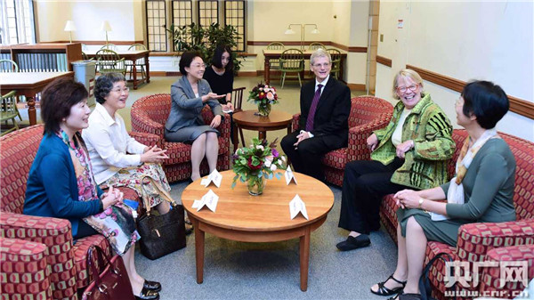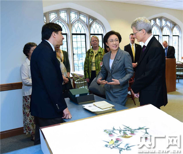 李克強總理夫人程虹當地時間20日來到美國瓦薩學院參觀交流。