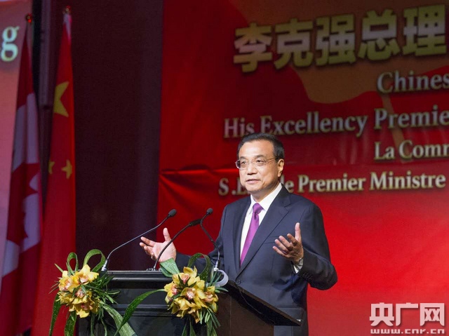 央廣網(wǎng)蒙特利爾9月24日消息(記者馬喆)當(dāng)?shù)貢r(shí)間23日晚,正在蒙特利爾訪問的李克強(qiáng)和夫人程虹出席加拿大華僑華人舉行的歡迎宴會(huì)?偫碓谥罗o中對(duì)在加華僑華人表示誠摯問候和良好祝愿。他說,中國經(jīng)濟(jì)新舊動(dòng)能轉(zhuǎn)換提供了廣闊機(jī)遇,歡迎廣大華僑華人到國內(nèi)投資投智、創(chuàng)業(yè)興業(yè)。