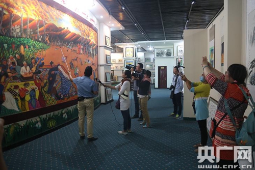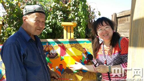 現(xiàn)場(chǎng)采訪了中國(guó)“十大農(nóng)民書(shū)畫(huà)家”之一的熱合曼·阿皮孜。