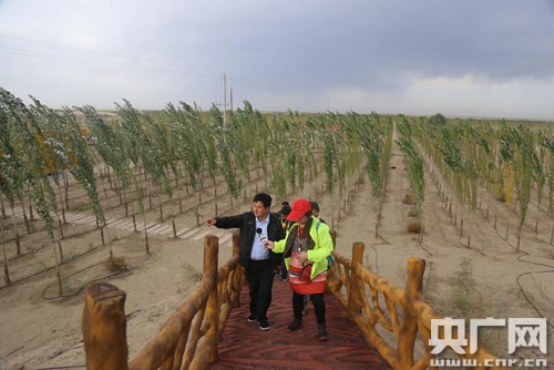 記者們?cè)邴溕w提縣百萬(wàn)畝防風(fēng)固沙生態(tài)林建設(shè)基地。