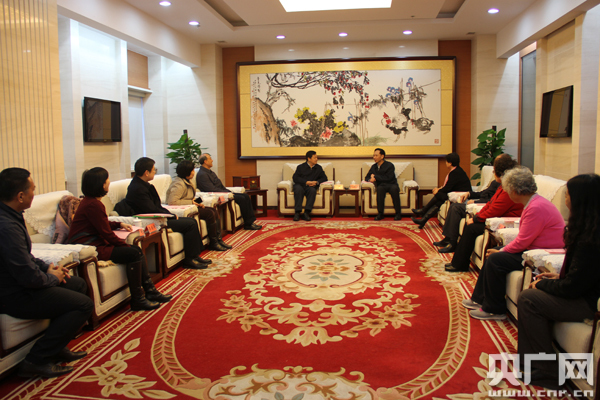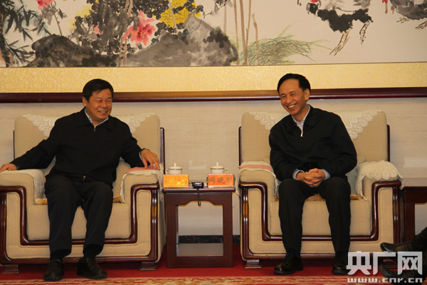 中央人民廣播電臺臺長閻曉明與教育部副部長、國家語委主任杜占元會談(央廣網記者仇劍梅 攝)
