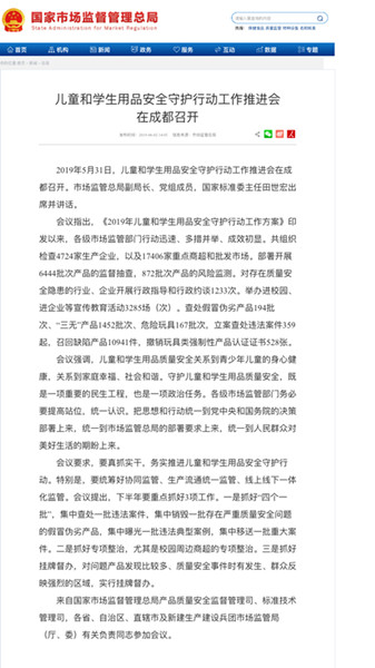 央廣網(wǎng)北京6月3日消息(記者張明浩)記者從市場監(jiān)管總局獲悉,自《2019年兒童和學(xué)生用品安全守護(hù)行動工作方案》印發(fā)以來,各級市場監(jiān)管部門行動迅速、多措并舉、成效初顯。共組織檢查4724家生產(chǎn)企業(yè),以及17406家重點(diǎn)商超和批發(fā)市場。部署開展6444批次產(chǎn)品的監(jiān)督抽查,872批次產(chǎn)品的風(fēng)險監(jiān)測。對存在質(zhì)量安全隱患的行業(yè)、企業(yè)開展行政指導(dǎo)和行政約談1233次。舉辦進(jìn)校園、進(jìn)企業(yè)等宣傳教育活動3285場(次)。查處假冒偽劣產(chǎn)品194批次、“三無”產(chǎn)品1452批次、危險玩具167批次,立案查處違法案件359起,召回缺陷產(chǎn)品10941件,撤銷玩具類強(qiáng)制性產(chǎn)品認(rèn)證證書528張。