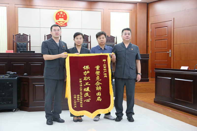 北京一中院黨組書記、院長吳在存,北京破產(chǎn)法庭庭長鄭偉華、副庭長鄒明宇、承辦法官劉彧,以及破產(chǎn)管理人、39名企業(yè)原職工參加了今天的發(fā)放工作。職工工資按照現(xiàn)金和非現(xiàn)金兩種形式進(jìn)行發(fā)放。這次領(lǐng)到工資的職工中有不少是困難職工和老職工。路女士和楊女士都是家中唯一的勞動(dòng)力,擔(dān)負(fù)著贍養(yǎng)生病老人和撫養(yǎng)未成年子女的重?fù)?dān),因?yàn)槭I(yè)導(dǎo)致全家生活陷入困難,此次分別領(lǐng)到欠款76萬元、31.5萬元;劉女士、張女士等四位員工,企業(yè)停薪時(shí)均處于孕期,本來更需要得到保障,卻因公司停業(yè)失去工作,分別領(lǐng)到欠款8萬元、17.6萬元;51歲的楊女士是公司的老員工,領(lǐng)到欠款31.5萬元;還有數(shù)名從外地趕來的職工,不為數(shù)額多少,只為分享職工權(quán)益得到保護(hù)的喜悅……發(fā)放現(xiàn)場,職工代表對(duì)合議庭從案件審理到重整計(jì)劃執(zhí)行的每個(gè)階段,體現(xiàn)出的專業(yè)、細(xì)致、耐心的工作作風(fēng)表示衷心感謝,稱贊合議庭“切切實(shí)實(shí)解決群眾的民生問題,讓群眾切身感受到人民法院對(duì)群眾利益的保護(hù)和救濟(jì)”。職工代表還現(xiàn)場向合議庭贈(zèng)送錦旗,“重整危企解困局,保護(hù)職工暖民心”。