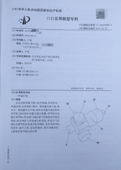 盧燦是浙江人,2016年開始,他自己開辦了一個小的個體加工廠,專門生產(chǎn)空氣壓縮機和恒壓減壓閥,2016年年末,他向國家知識產(chǎn)權局提交專利申請,實用新型專利證書的授權公告日為2017年9月。二審辯護人郭鵬說:“在生產(chǎn)過程當中,按照盧燦本人的說法可能有10萬只以上。他的銷售方式有線下銷售,也有通過網(wǎng)絡銷售,全國也有一些相對穩(wěn)定的代理商在轉賣他的恒壓閥!
