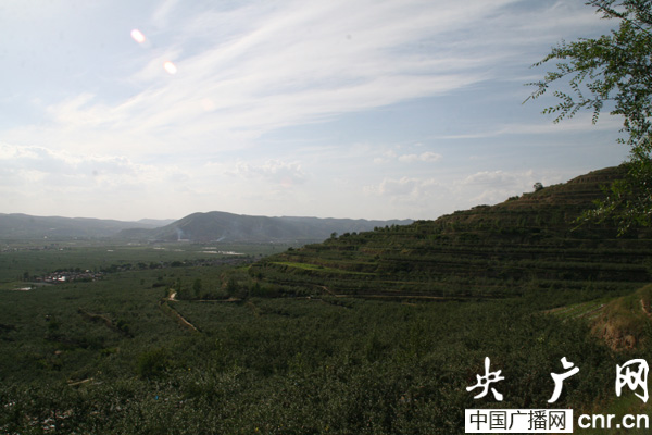 甘肅靜寧縣山坡田地上遍種蘋(píng)果
