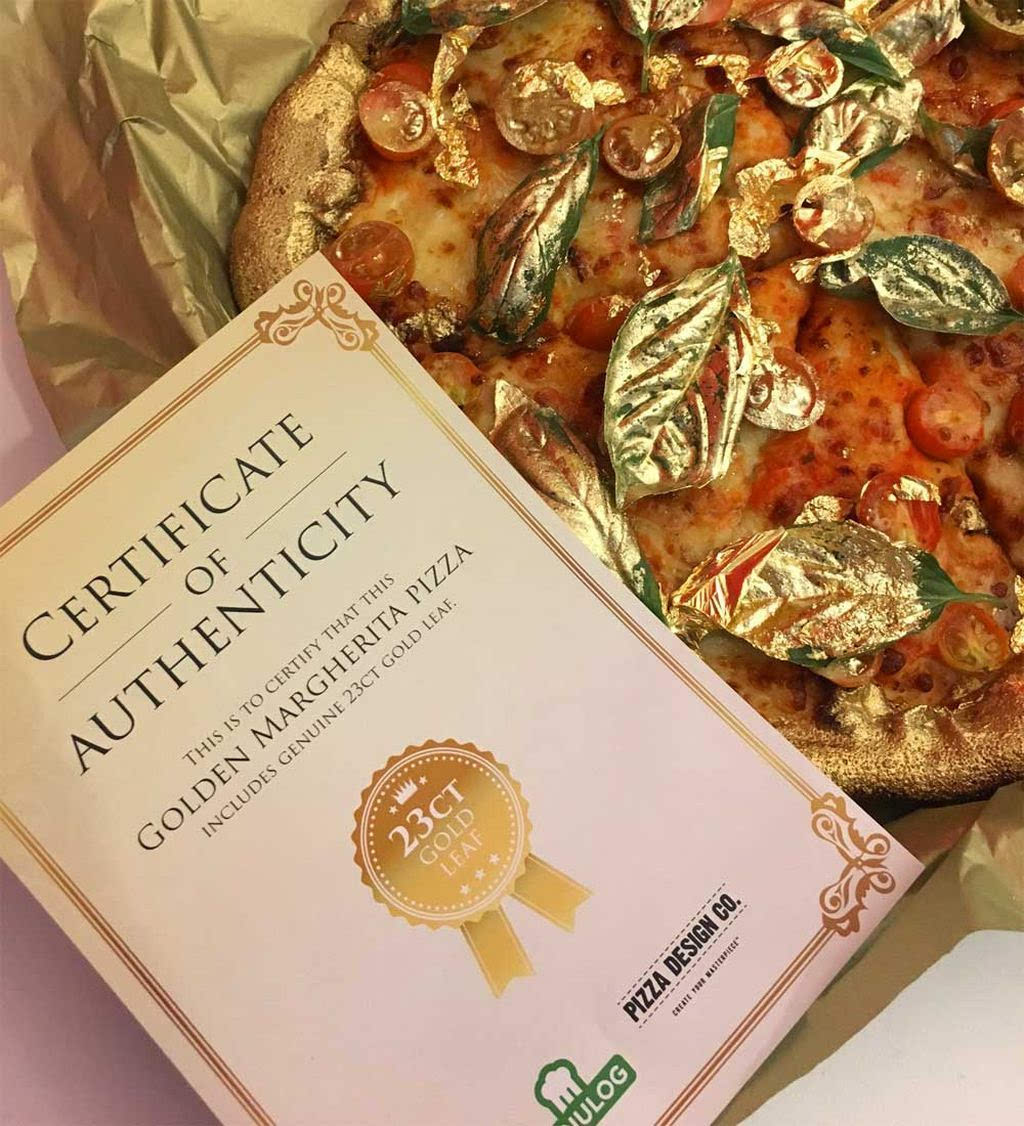 這款標(biāo)價(jià)50澳元(約合254元人民幣)的比薩只賣10月13日這一天。提前在該網(wǎng)上訂購(gòu)這款比薩的前100名顧客可以免費(fèi)獲得。這家比薩餅店說(shuō),每張比薩將附一張黃金含量證書。從他們?cè)谏缃痪W(wǎng)站上發(fā)布的照片看,這款比薩的番茄和羅勒葉等食材上覆蓋著金箔,顯得頗為“土豪”。