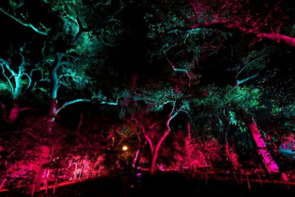 據(jù)外媒報道,上個月,美國加州拉肯納達石嶺舉行了一場名為“魔法燈光森林”的燈光展。黑夜中,參觀者們行走在被五彩燈光照亮的森林中,如同置身魔法世界。