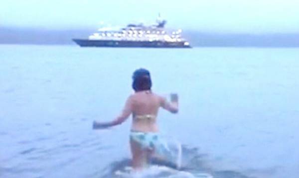 英國影星洛林·凱利十分熱衷于探險活動。盡管現(xiàn)在已57歲了,但為了更親近自然,她在25周年結(jié)婚紀念日這天里做出了一個大膽的行為:身穿比基尼在南極-29°C的海水中涉水嬉戲。凱利在視頻中說:“這是我第一次在如此嚴寒的氣候里下水游玩,這里是南極地帶,我要下水了!闭f完,她脫下紅色大衣,身穿比基尼一路嬉笑著往水深處跑去,沒有絲毫的猶豫。
