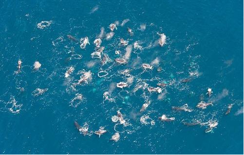 近年來,科學(xué)家們首次發(fā)現(xiàn)靠近南極區(qū)域的南非海岸線周圍出現(xiàn)大量座頭鯨聚集在一起的罕見現(xiàn)象。這些座頭鯨的數(shù)量多達(dá)200頭,狂亂地聚集在食物區(qū)的中央。作為瀕危物種,座頭鯨的數(shù)量已經(jīng)非常稀少了,如此多的座頭鯨同時(shí)出現(xiàn)實(shí)在是讓人覺得不可思議。相關(guān)專家指出,這種現(xiàn)象的出現(xiàn)只是因?yàn)樽^鯨在數(shù)量急劇減少的情況下,想要簡單地回歸群居生活。