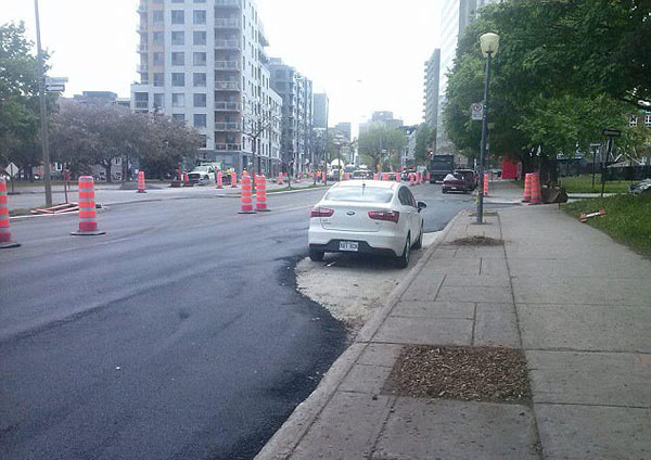 為迎接7月份的賽車比賽,蒙特利爾的勒萊維斯克大道需要重新鋪一層瀝青,因為一名鋪路工人繞著一輛車鋪了一層瀝青,在路上留下了一個有趣的半圓。附近的居民西蒙·羅貝熱將“半成品”圖片上傳到網(wǎng)上,并配文稱“這就是我們蒙特利爾的鋪路方式”。