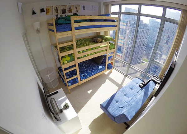 41歲的阿德里安·克魯克(Adrian Crook)之前住在墨西哥,后來和妻子離婚后,便獨自帶著5個孩子來到了溫哥華。雖然手頭緊張,但阿德里安并沒有委屈孩子,他毅然選擇了搬進市中心的一間兩居室套間。僅僅93平方米的小窩對一個6口之家而言太過狹小,于是身為極簡主義者的阿德里安決定動手改造房間,節(jié)省資金,維持接下來的新生活。