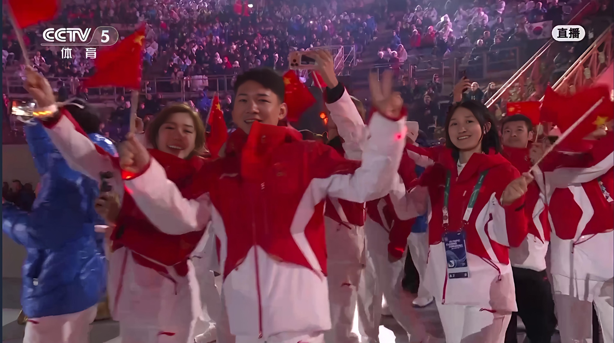 在2026年米蘭冬奧會(huì)閉幕式上的中國(guó)代表團(tuán)(圖片來(lái)源:央視新聞客戶端)