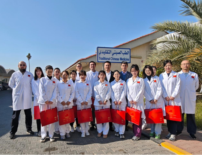 2026年1月20日,中國駐科威特大使楊欣赴援科威特中國醫(yī)療隊走訪慰問,贈送“新春暖心包”(圖片來源:中國駐科威特大使館網(wǎng)站)