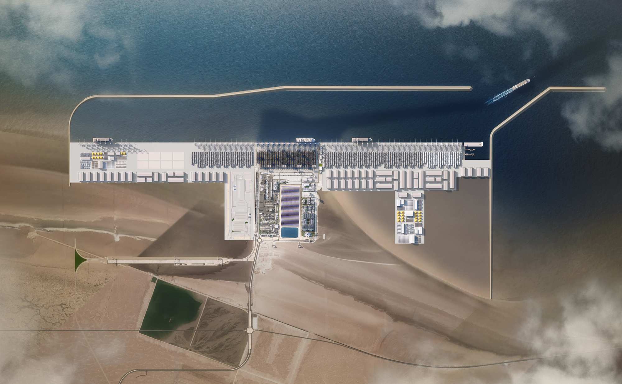 科威特大穆巴拉克港項目規(guī)劃圖。該項目是近年來中東地區(qū)規(guī)模最大的海港建設項目之一(圖片提供:中國駐科威特大使館)