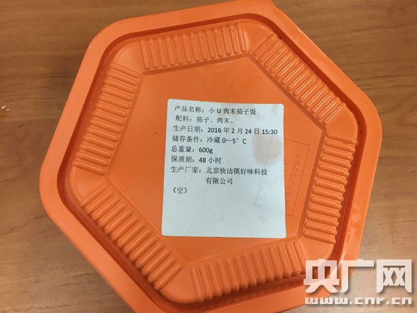 記者昨天通過美團外賣購買了天外飛鮮銷售的兩款產品——小火慢燉脆排飯和小U肉末茄子飯,在產品外包裝上,寫著“北京快潔筷好味科技有限公司”生產。在監(jiān)管部門的網站上,卻沒有這家企業(yè)的任何信息。