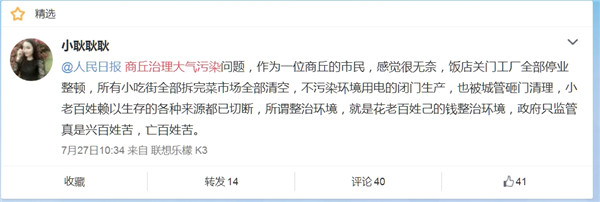 針對(duì)群眾質(zhì)疑,商丘市委宣傳部官方微博昨天發(fā)文稱,市政府已經(jīng)表態(tài):一定會(huì)有飯吃,車能加油,但所涉及到的各門店要加快整改,符合條件的均可營(yíng)業(yè)。當(dāng)?shù)貦?quán)威媒體今天也再次刊發(fā)對(duì)市環(huán)保局相關(guān)負(fù)責(zé)人的專訪,其中透露2016年8月底,全市餐飲場(chǎng)所全部安裝油煙凈化設(shè)施,凈化率達(dá)到90%以上。河南省環(huán)保廳一位知情人士介紹,商丘大氣污染防治的底子很差。他指出,商丘的施工揚(yáng)塵非常嚴(yán)重,第二個(gè)是城市管理水平比較差,飯店的油煙設(shè)施普及率很低。