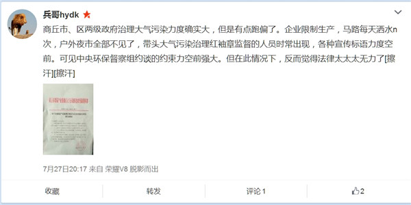 中央環(huán)保督查組本月進(jìn)駐河南以來(lái),河南各地因?yàn)榄h(huán)保措施落實(shí)不力,處理了上百位干部,僅商丘就已問(wèn)責(zé)了136名黨政干部。今年4月,環(huán)保部約談了商丘市政府負(fù)責(zé)人,商丘的大氣污染的確也面臨著嚴(yán)峻形勢(shì)。河南省環(huán)保廳的知情人士透露:各市現(xiàn)在對(duì)這個(gè)事情也是窮盡一些手段,對(duì)大氣進(jìn)行全方位的治理,力圖能夠把污染物濃度降低一些。這種情況下確實(shí)有一些地方矯枉過(guò)正,比如你說(shuō)的這個(gè)商丘。