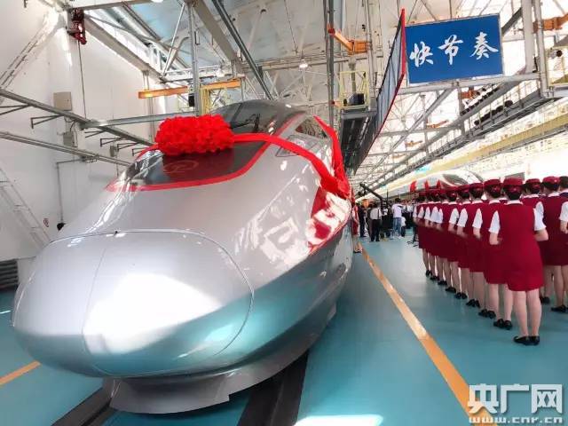 央廣網(wǎng)北京6月25日消息(記者郭淼)據(jù)中國之聲《新聞晚高峰》報道,具有完全自主知識產(chǎn)權的兩列中國標準動車組,今天(25日)正式被命名為“復興號”。而且明天(26日),“復興號”將率先在京滬高鐵兩端的北京南站和上海虹橋站雙向首發(fā),分別擔當G123次和G124次高速列車!皬团d號”動車組試驗速度可達400km/h及以上,持續(xù)運行速度為350km/h。那么,從“和諧號”到“復興號”經(jīng)歷了怎樣的變化?未來具有純正中國血統(tǒng)的“復興號”又會有怎樣的高能?