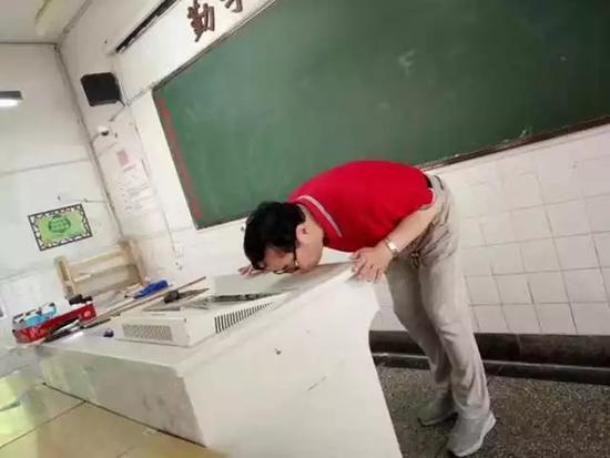 央廣網(wǎng)杭州6月29日消息 據(jù)中國之聲《新聞晚高峰》報道,一名穿著紅色T恤的男老師,低下頭深情親吻著三尺講臺……男老師叫盛志軍,是浙江省數(shù)學(xué)特級教師,這一天,是他在富陽郁達夫中學(xué)上的最后一堂數(shù)學(xué)課。從教40年,他送走了一批又一批的學(xué)生,如今,到了他要離別的時刻。他在同學(xué)們?nèi)ノ顼埡螅睾椭v臺做這樣的告別。